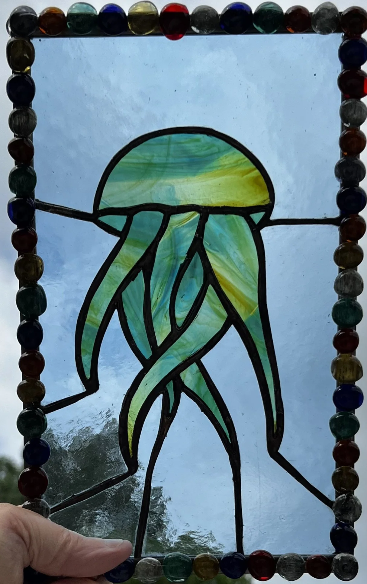 Ahhhh…..what a feeling of serenity blankets my whole being when I think of creating a piece of art glass. The thought truly takes me back to Aunt Clara’s alcove. Each piece is designed to your liking and then hand built. This way it’s a “one of a kind”.